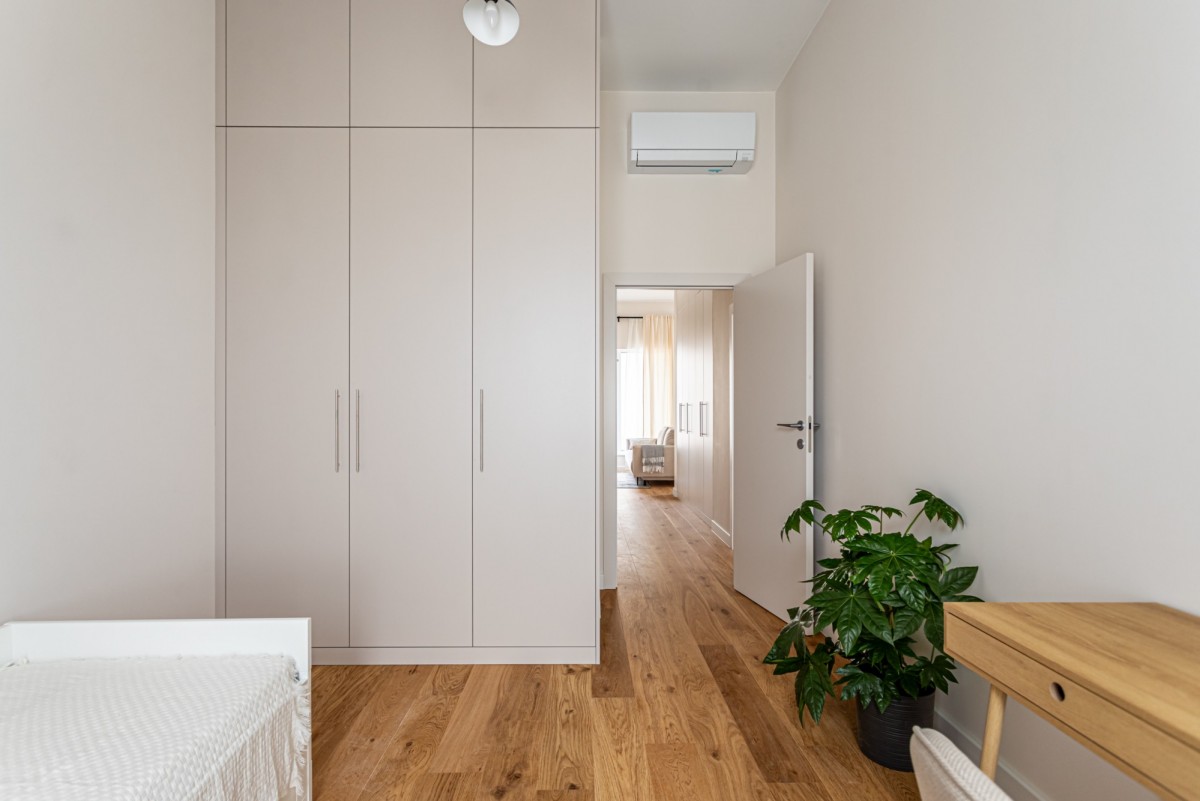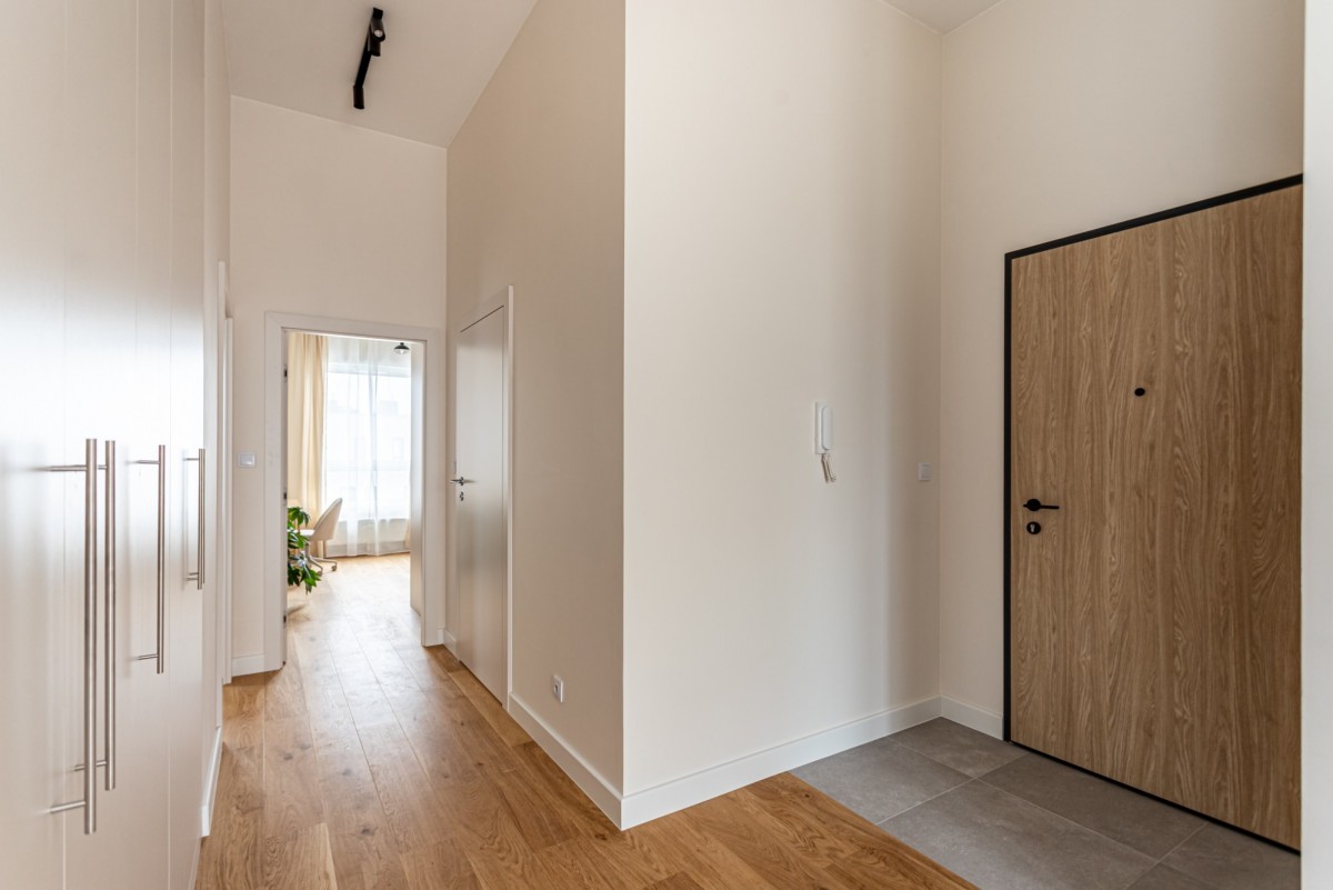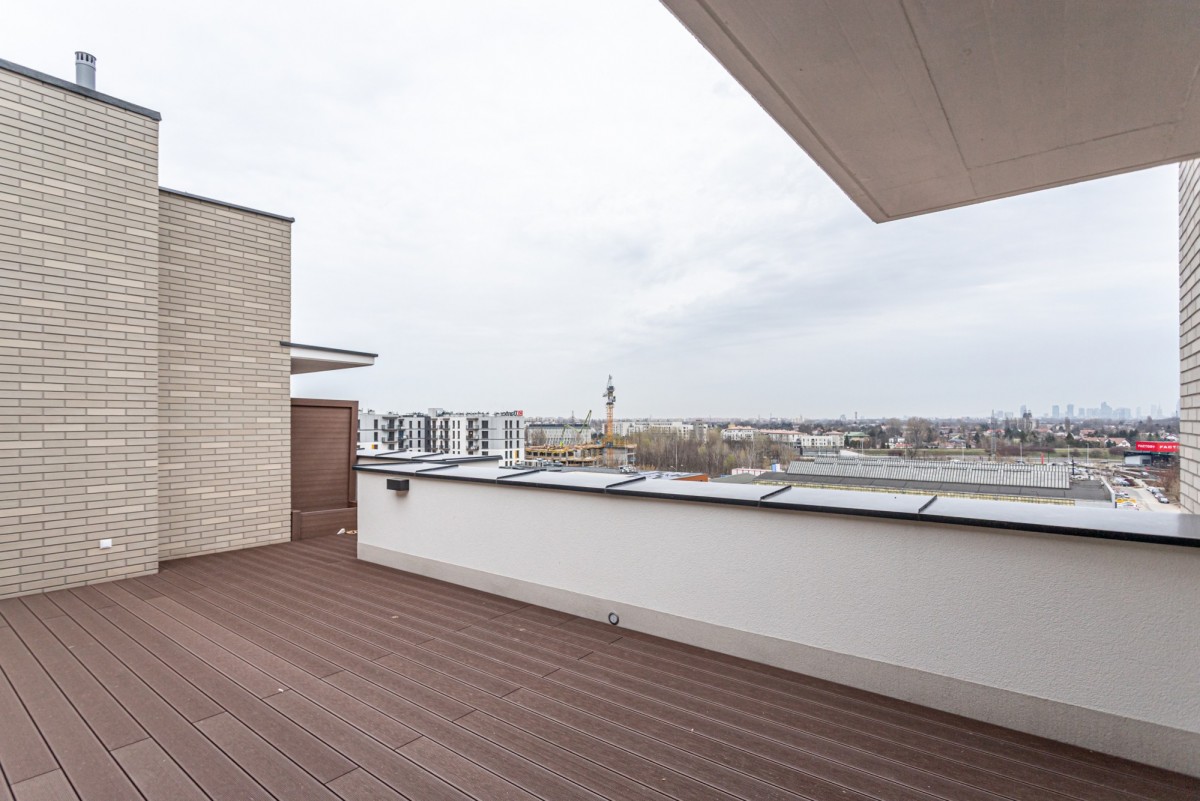Wyjątkowy penthouse o powierzchni 70 m2, usytuowany na najwyższej kondygnacji, łączy przestrzeń i dyskretny luksus, salon z jadalnią i dużymi oknami otwiera się na 40 m2 taras z panoramicznym widokiem na miasto. Wnętrza mają ponad 3,3 m wysokości, ciepłe drewniane podłogi, klimatyzację oraz rozległe szafy w zabudowie. Mieszkanie jest nowe i nigdy niezamieszkane.