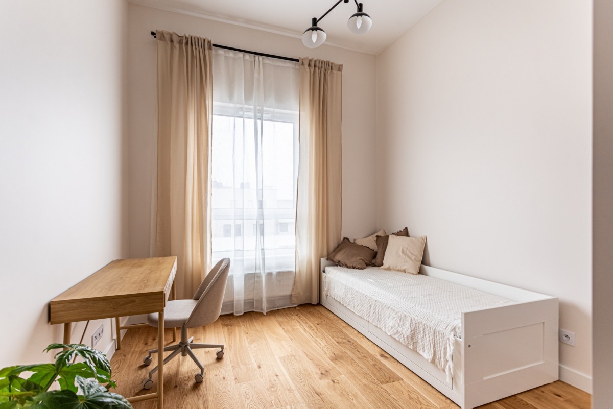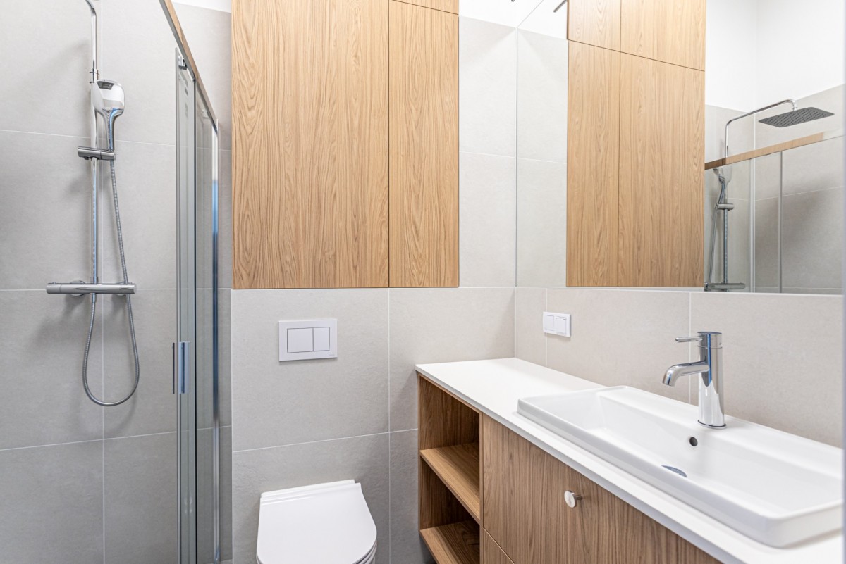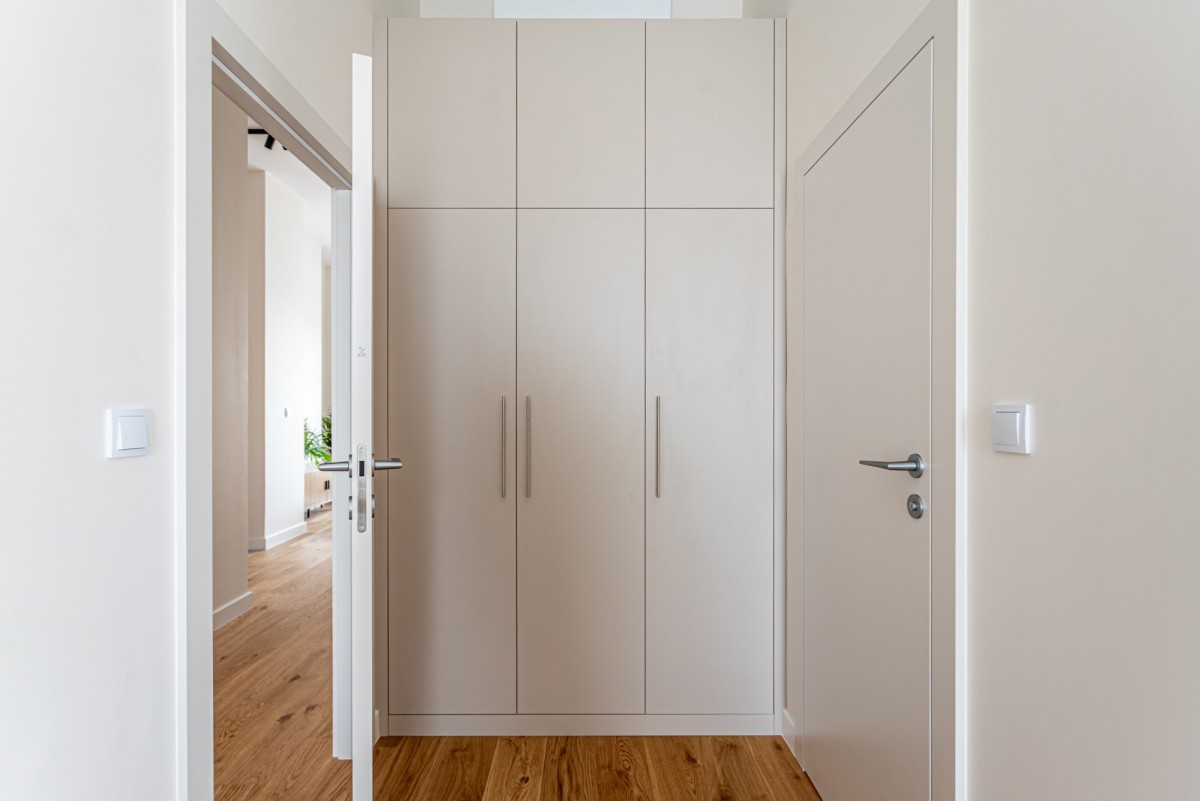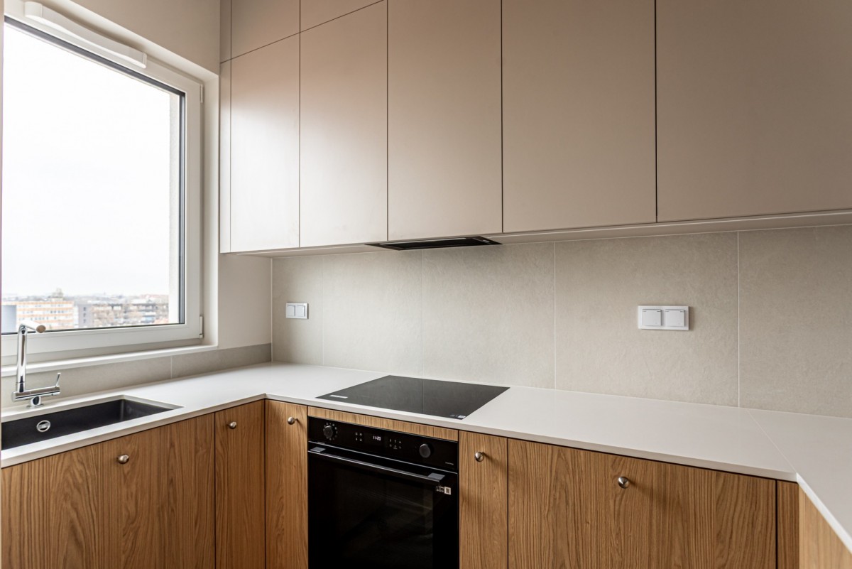 Wyjątkowy penthouse o powierzchni 70 m2, usytuowany na najwyższej kondygnacji, łączy przestrzeń i dyskretny luksus, salon z jadalnią i dużymi oknami otwiera się na 40 m2 taras z panoramicznym widokiem na miasto. Wnętrza mają ponad 3,3 m wysokości, ciepłe drewniane podłogi, klimatyzację oraz rozległe szafy w zabudowie. Mieszkanie jest nowe i nigdy niezamieszkane.