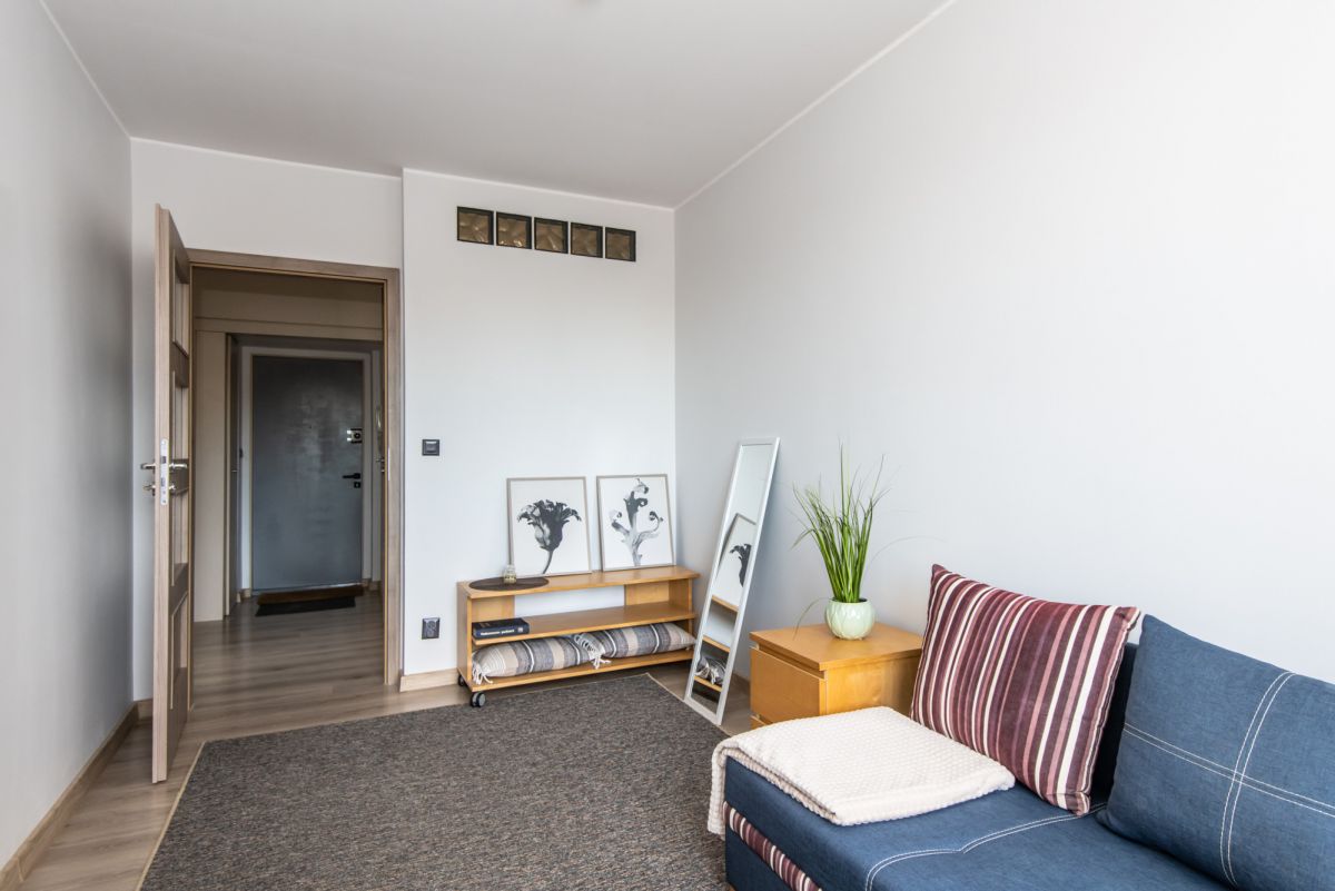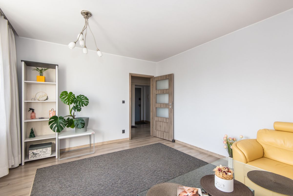 Do mieszkania przynależy również piwnica, która stanowi dodatkową przestrzeń do przechowywania rzeczy sezonowych. Lokal znajduje się na 2. piętrze w budynku siedmiokondygnacyjnym, a jego powierzchnia wynosi 46,37 m². Rozkład pomieszczeń jest przemyślany i zapewnia wygodę zarówno dla singla, pary, jak i przyszłych najemców. Stan prawny nieruchomości to pełna własność.