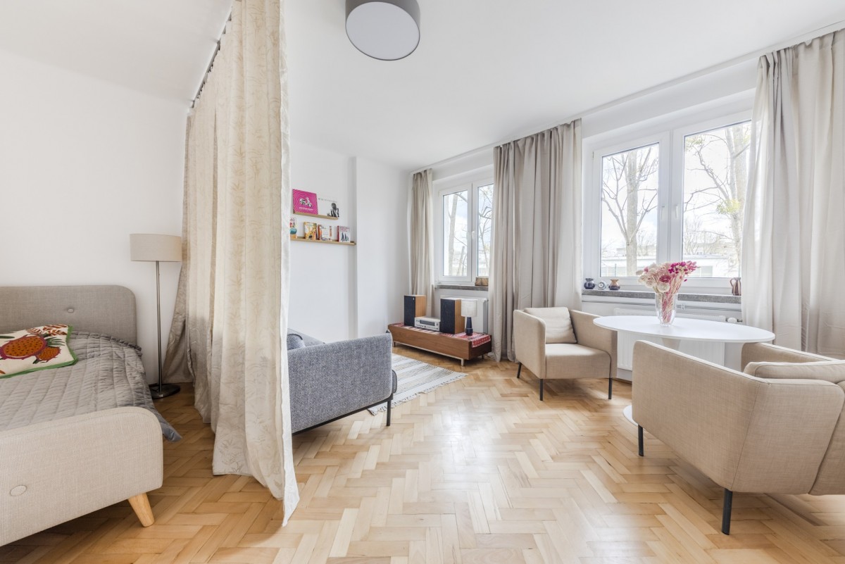 – duży pokój z wydzieloną częścią sypialnianą,