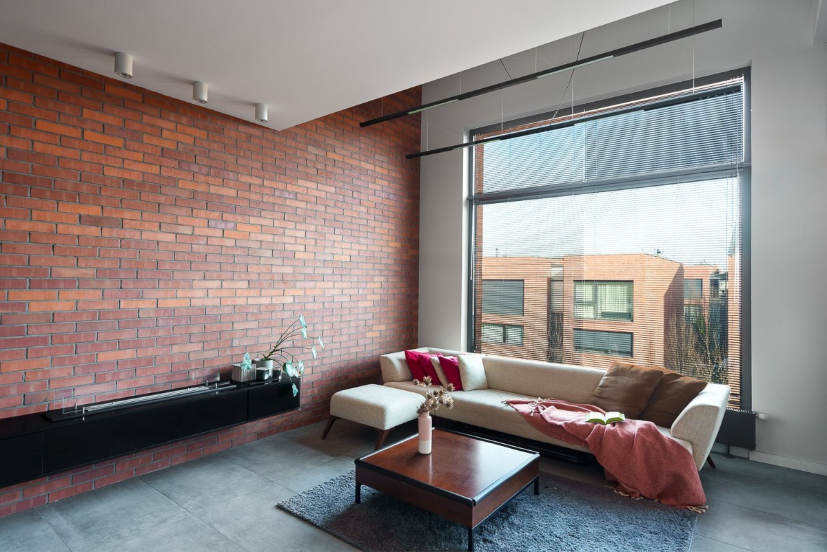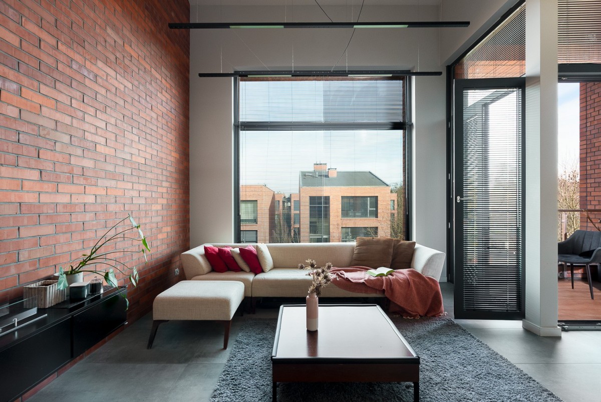 Apartament jest przestronny i doskonale doświetlony – dzięki panoramicznym oknom na parterze oraz oknom dachowym na antresoli.