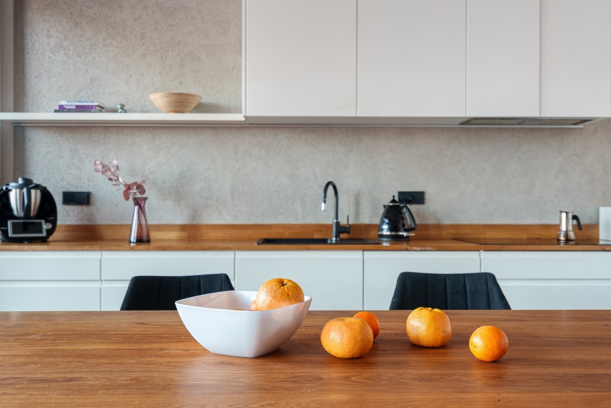 Mieszkanie jest w wyposażone w zabudowę i kompletne wyposażenie AGD w kuchni, i wykończone z najwyższej jakości materiałów, gotowe do zamieszkania.