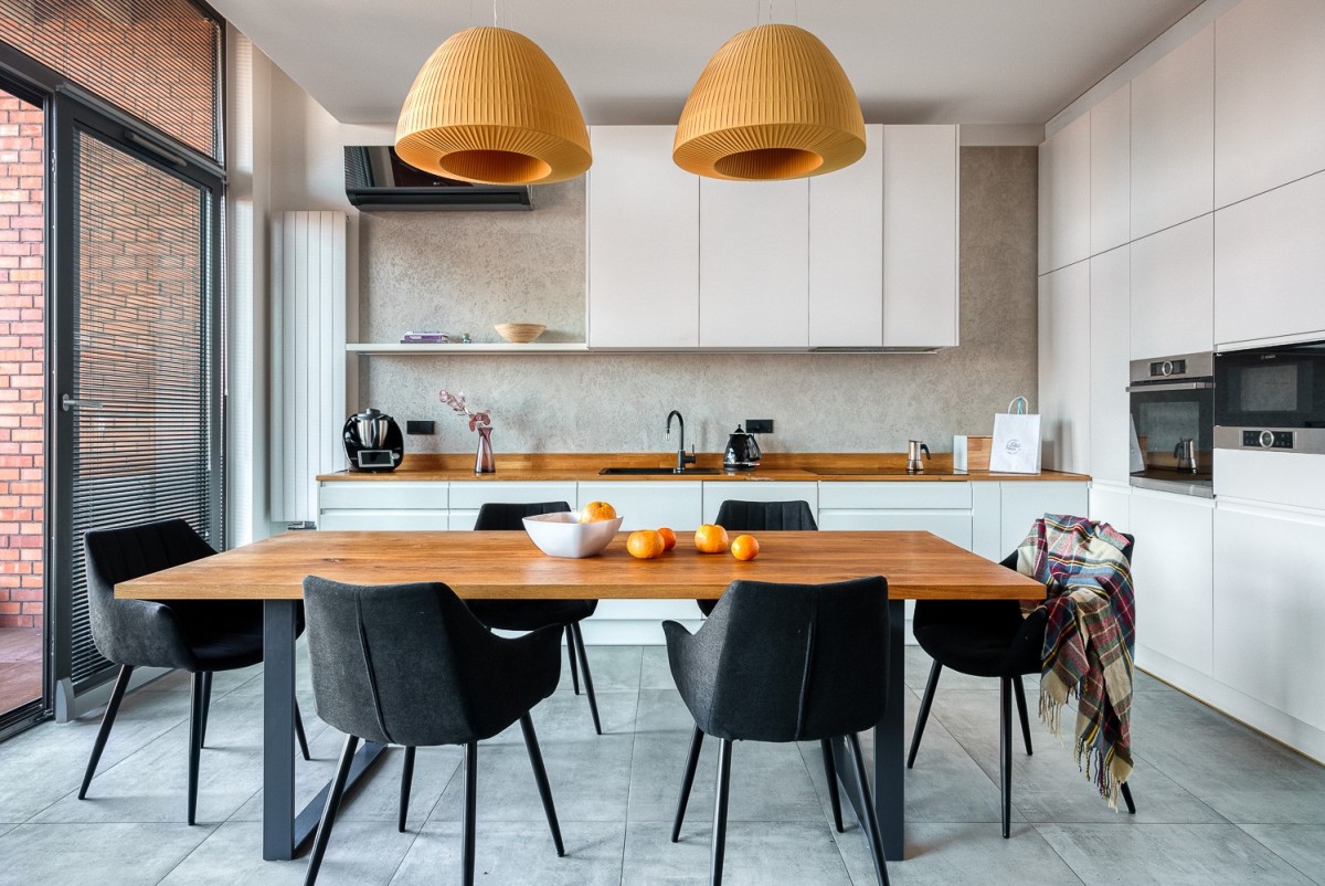 – otwarta przestrzeń salonu z kuchnią i jadalnią,