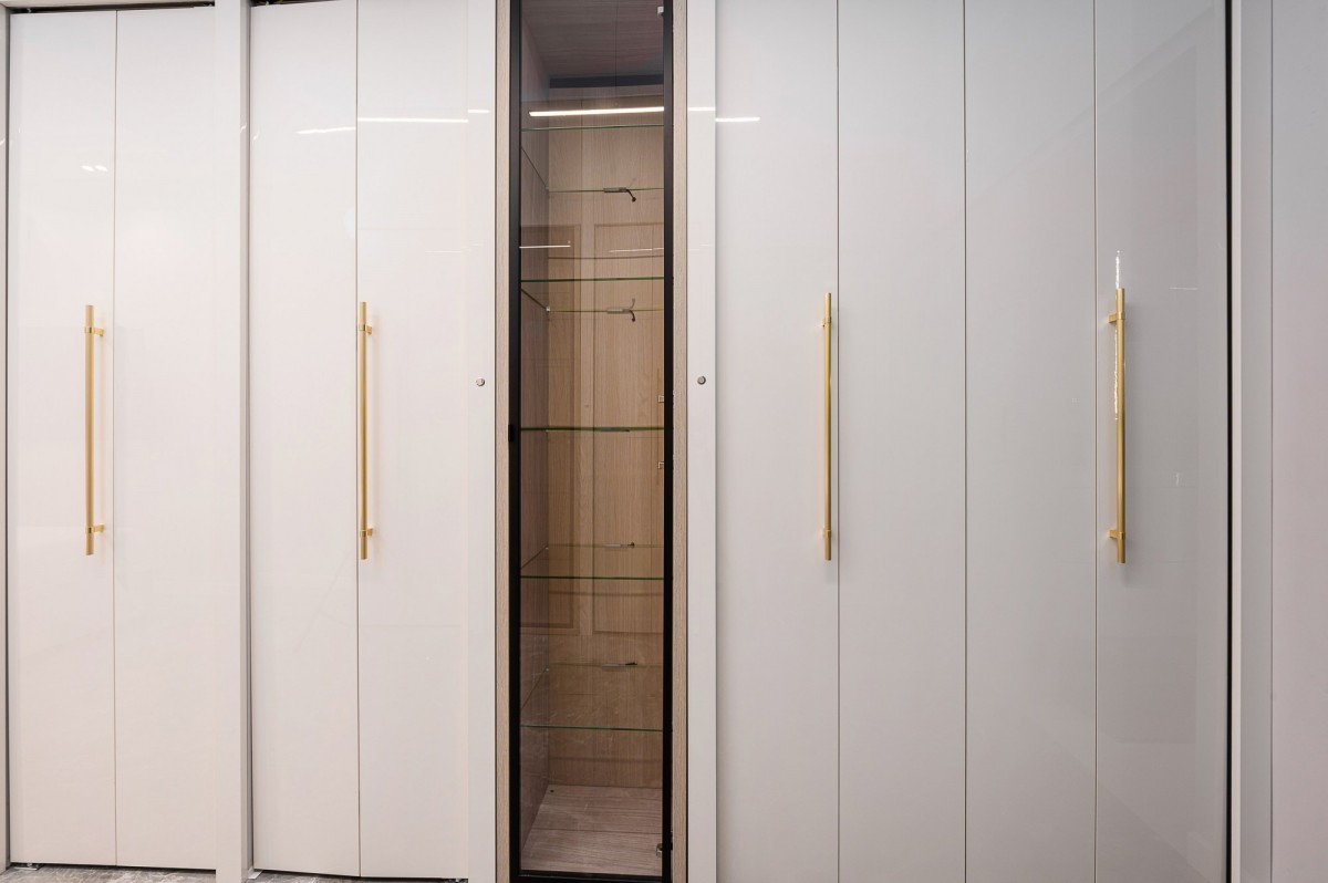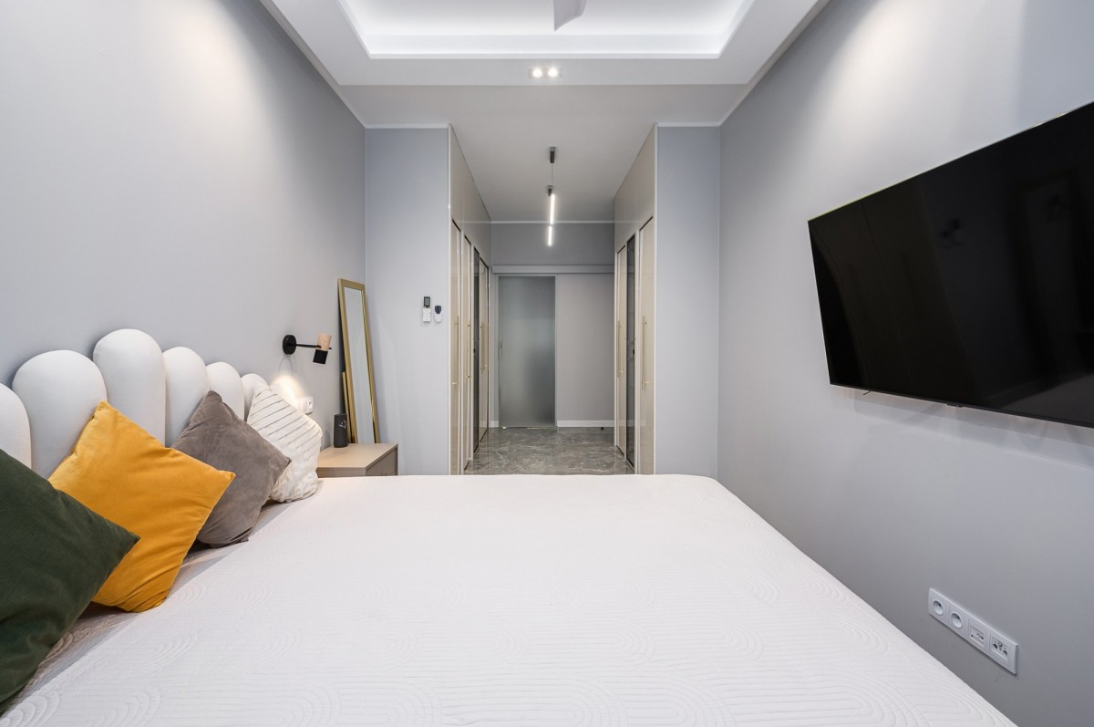 Mieszkanie jest w pełni wyposażone w meble w zabudowie oraz sprzęt AGD. Systemy przechowywania pozwalają zachować przestrzeń wolną i uporządkowaną. W każdym pokoju zainstalowano klimatyzację. Dodatkowe meble mogą pozostać w mieszkaniu po wcześniejszym uzgodnieniu.