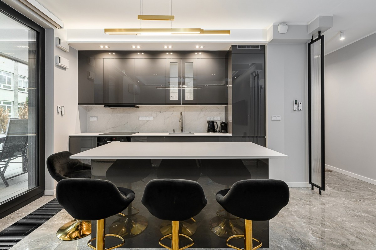 To mieszkanie po remoncie zaprojektowanym przez architekta, znajdujące się w nowoczesnej rezydencji z 2023 roku. Budynek posiada całodobową ochronę, parking podziemny oraz ogólnodostępny taras dla mieszkańców.