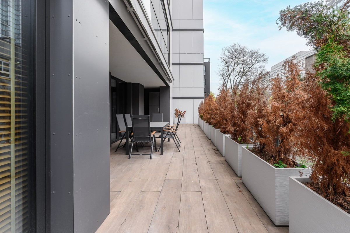 Apartament znajduje się na pierwszym piętrze i posiada wyjście na przestronny, prywatny taras, który stanowi naturalne przedłużenie strefy mieszkalnej. To idealne miejsce na aranżację strefy wypoczynku, jadalni lub letniego miejsca do pracy.