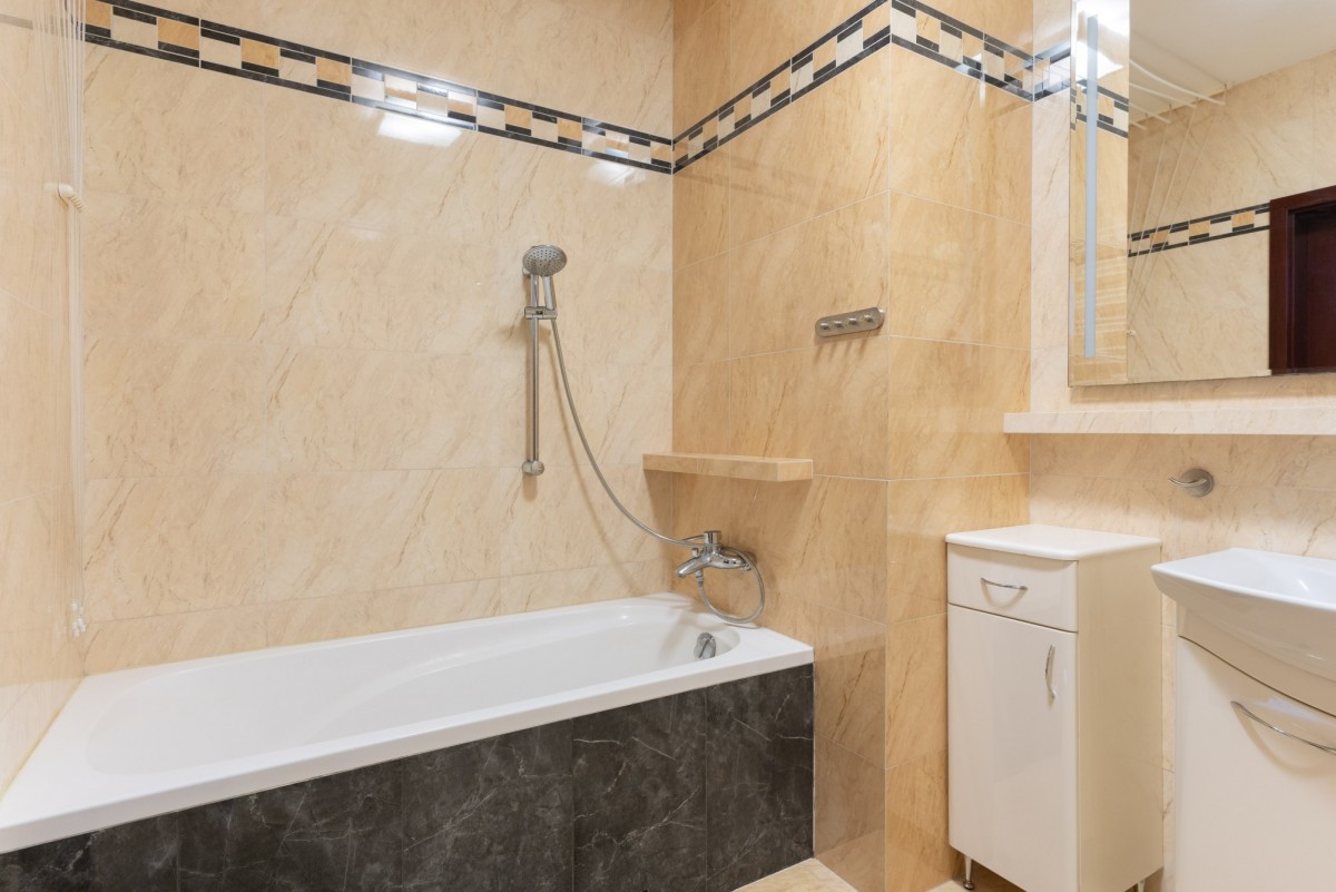 Łazienki: Dwie łazienki – jedna z wanną, druga oddzielna toaleta z pralką.