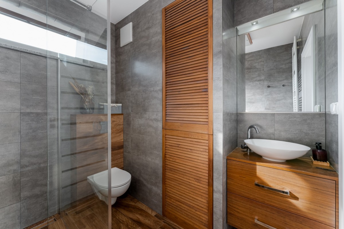 W mieszkaniu znajdują się liczne szafy i schowki, cała zabudowa wykonana została na wymiar.