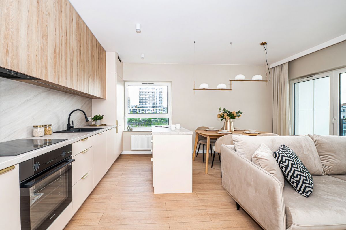 – przestronny salon z aneksem kuchennym oraz osobne dwa pokoje, co jest szczególnie przydatne w przypadku pracy czy nauki zdalnej