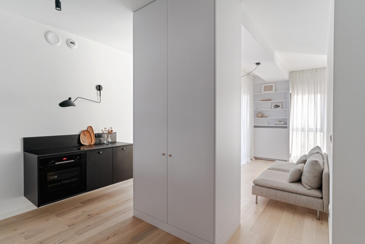Apartament zajmuje powierzchnię 43 m2 i składa się z:
