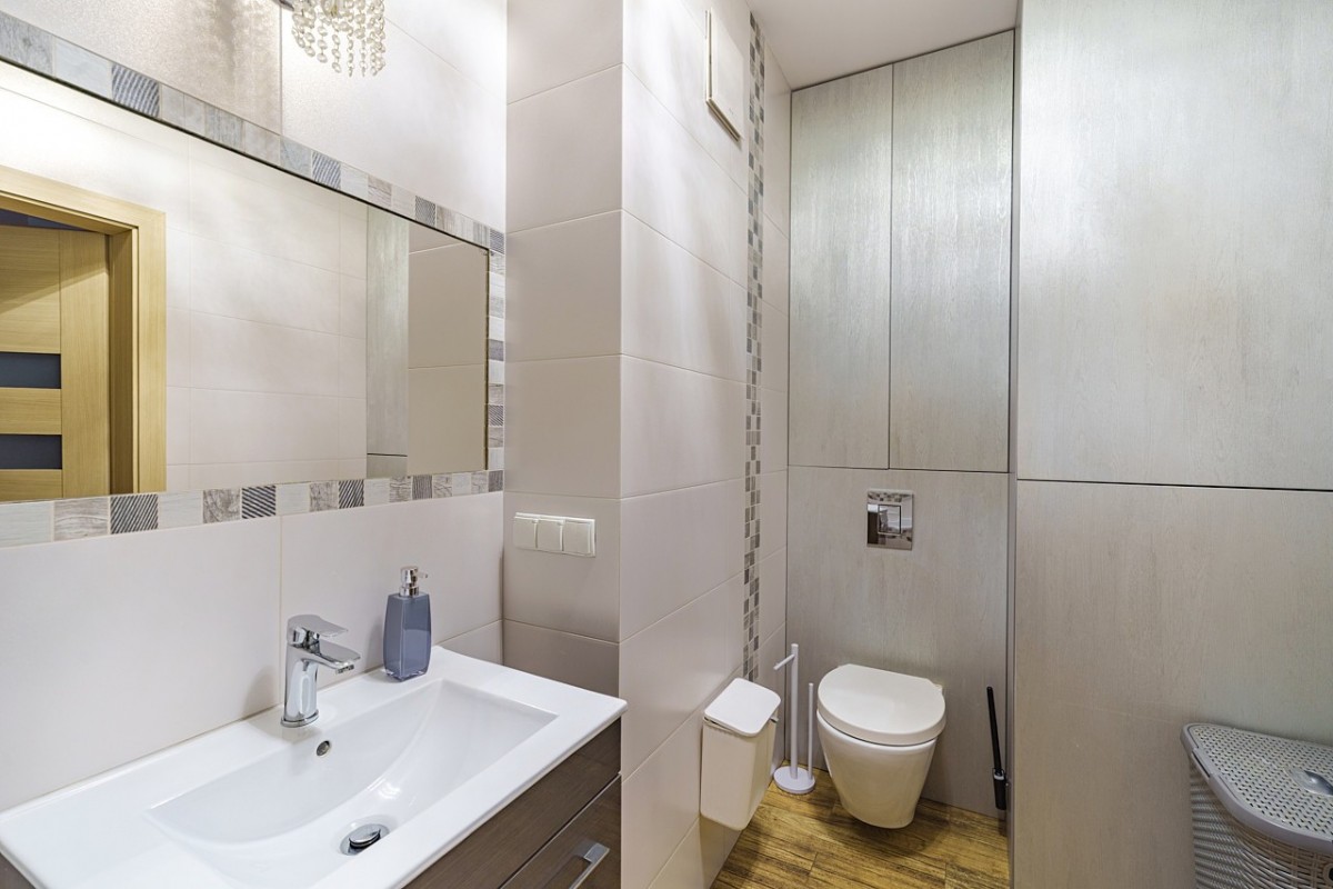 łazienka (5 m²) z wanną i funkcjonalną zabudową do przechowywania,