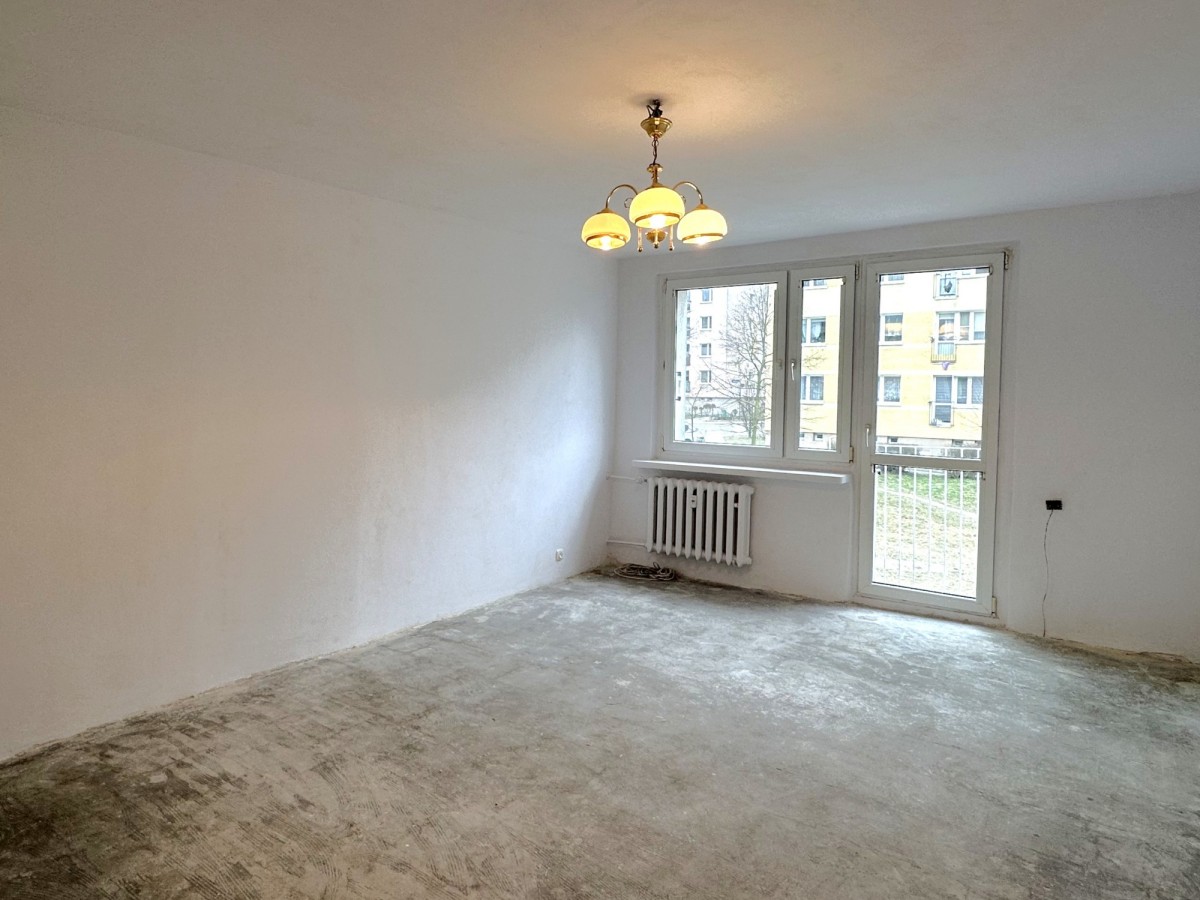 Mieszkanie znajduje się na pierwszym piętrze bloku z lat 60. i ma powierzchnię 43,3 m2.