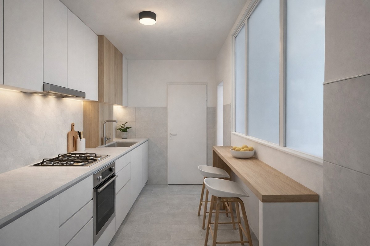 Atutem mieszkania jest funkcjonalny układ pomieszczeń. Lokal składa się z korytarza, dwóch niezależnych pokoi, „ślepej” kuchni oraz łazienki.