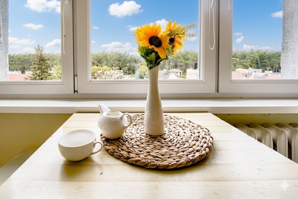 Z jednej strony roztacza się piękny widok na las, z drugiej – na główną ulicę, co zapewnia zarówno ciszę, jak i wygodę codziennego życia.
