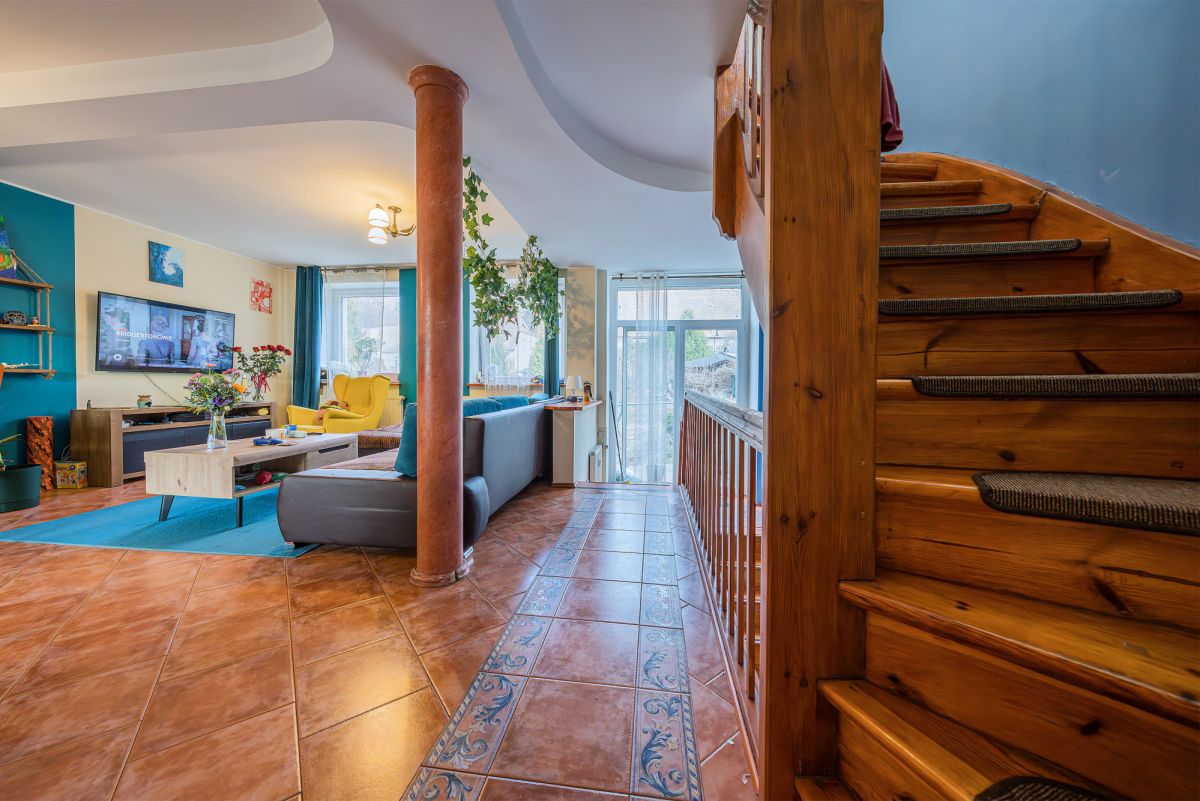 – Duży potencjał inwestycyjny. Dom jest obecnie podzielony na 3 niezależne, wynajmowane lokale oraz dodatkowy lokal usługowy, co generuje stały przychód.