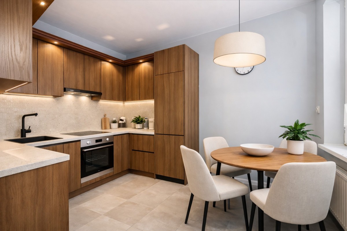 Mieszkanie zostało zaprojektowane w sposób wyjątkowo przemyślany – wyraźnie wydzielono strefę dzienną oraz prywatną, co zapewnia wygodę zarówno w codziennym funkcjonowaniu, jak i podczas pracy zdalnej. Lokal jest wyjątkowo cichy, mimo bliskości centrum miasta, co czyni go idealnym wyborem dla osób ceniących spokój.