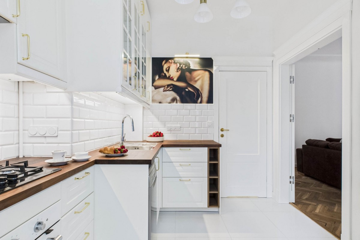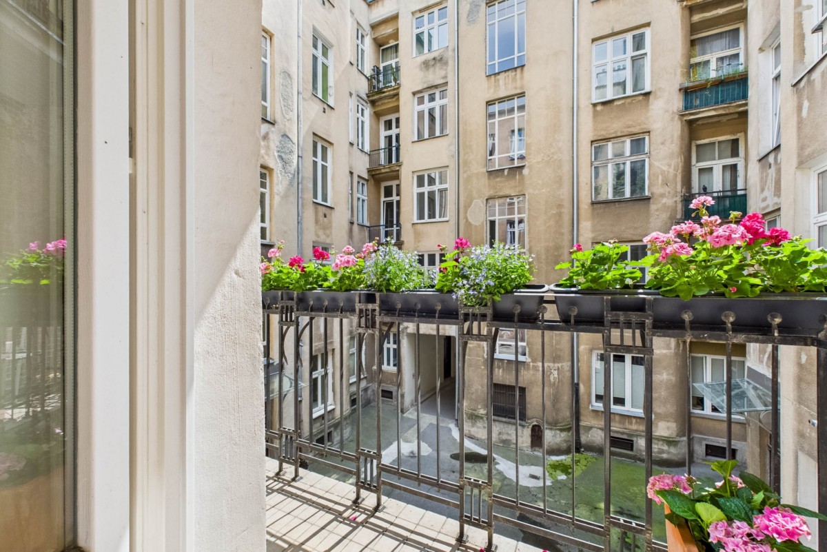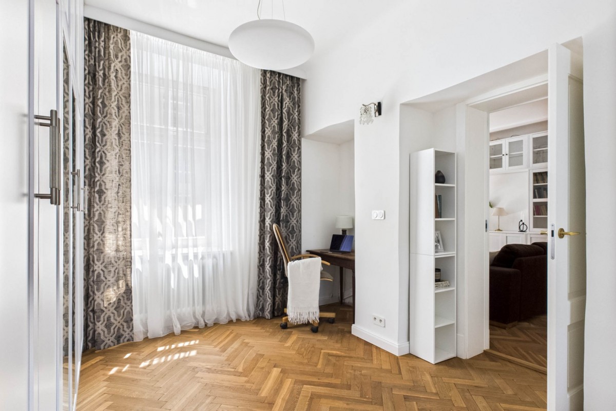 Though in the heart of Warsaw — the apartment is remarkably quiet. The only sound from the bedroom and kitchen windows is birdsong.