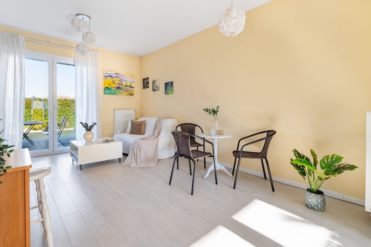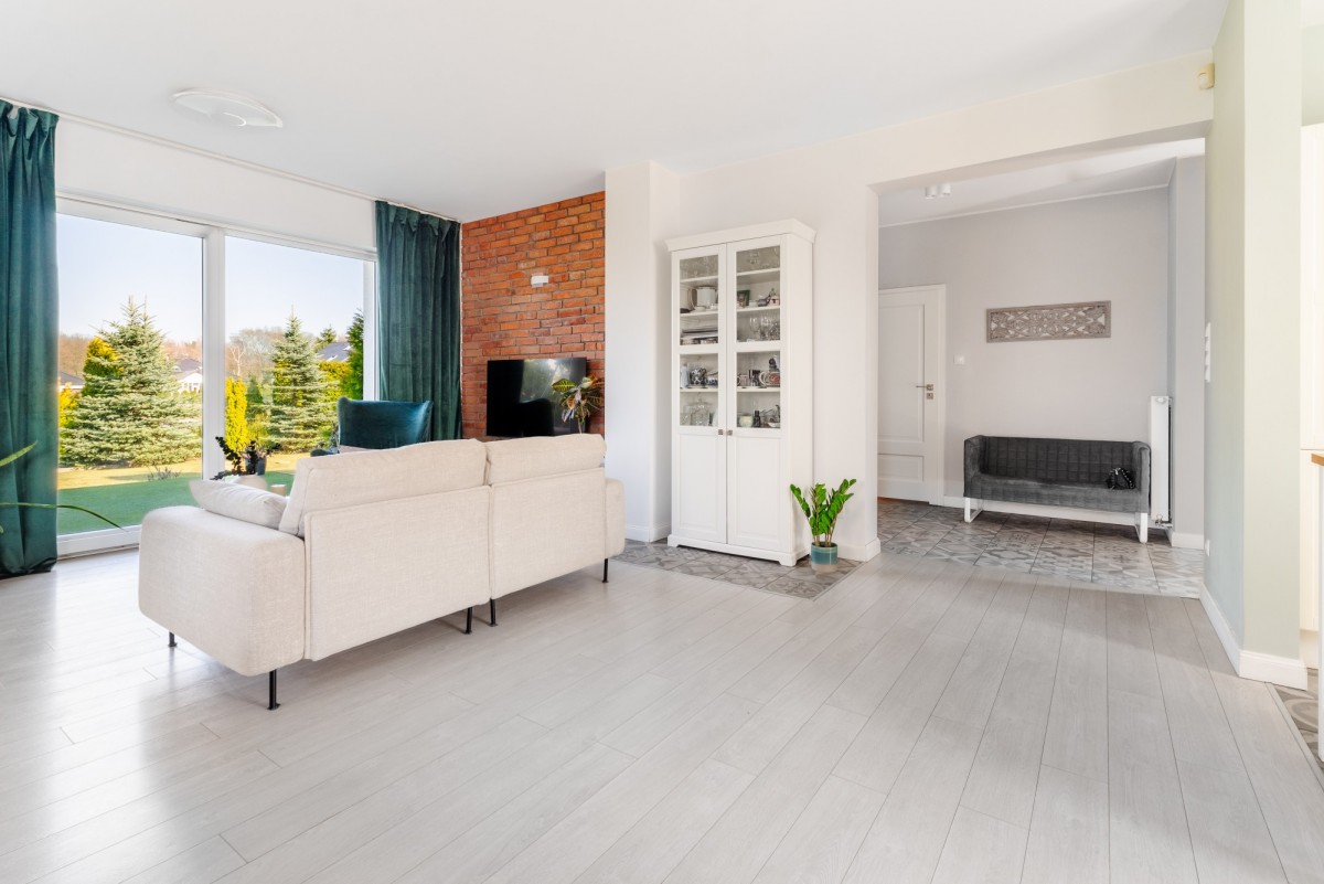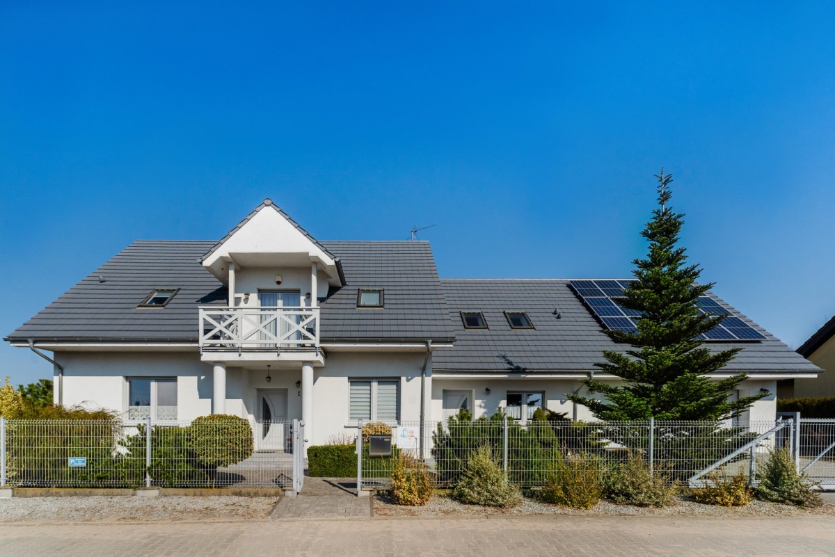 Niezależny apartament (51 m²) z własnym wejściem z zewnątrz stanowi idealne miejsce dla seniora, gości lub na prowadzenie działalności gospodarczej. Obecny układ składa się z salonu z kuchnią, sypialni oraz łazienki. Istnieje możliwość połączenia tej części z domem głównym, co pozwala na powiększenie głównej powierzchni mieszkalnej. Funkcjonalność podnoszą nowoczesne instalacje, w tym własna fotowoltaika oraz zmiękczacz wody, które obniżają koszty eksploatacji i zapewniają wyższy standard codziennego komfortu.