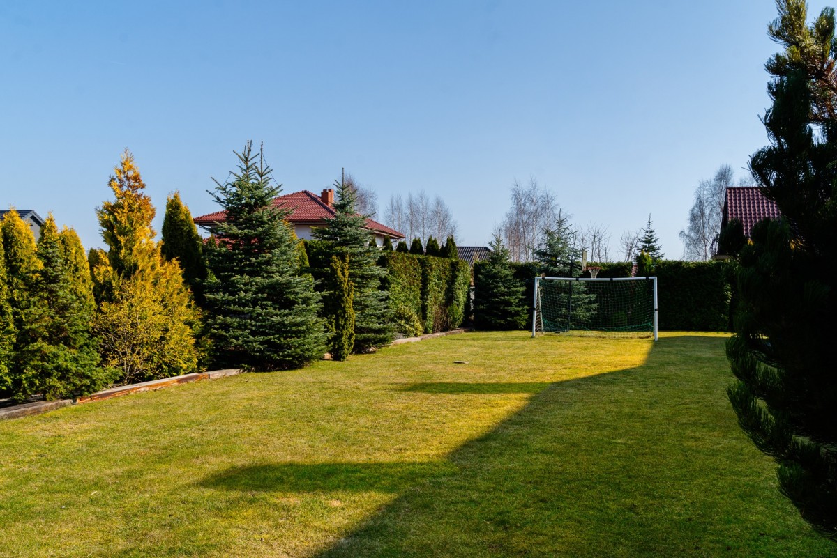 Nieruchomość położona jest na zadbanej działce o powierzchni 1201 m². Ogród jest w pełni ogrodzony i zagospodarowany, tworząc bezpieczną enklawę. Solidny budynek z garażem dwustanowiskowym i dodatkowym pomieszczeniem magazynowym zapewnia dużą przestrzeń do przechowywania. Spokojna okolica w Złotkowie sprzyja wypoczynkowi, będąc jednocześnie świetną bazą wypadową do miasta.