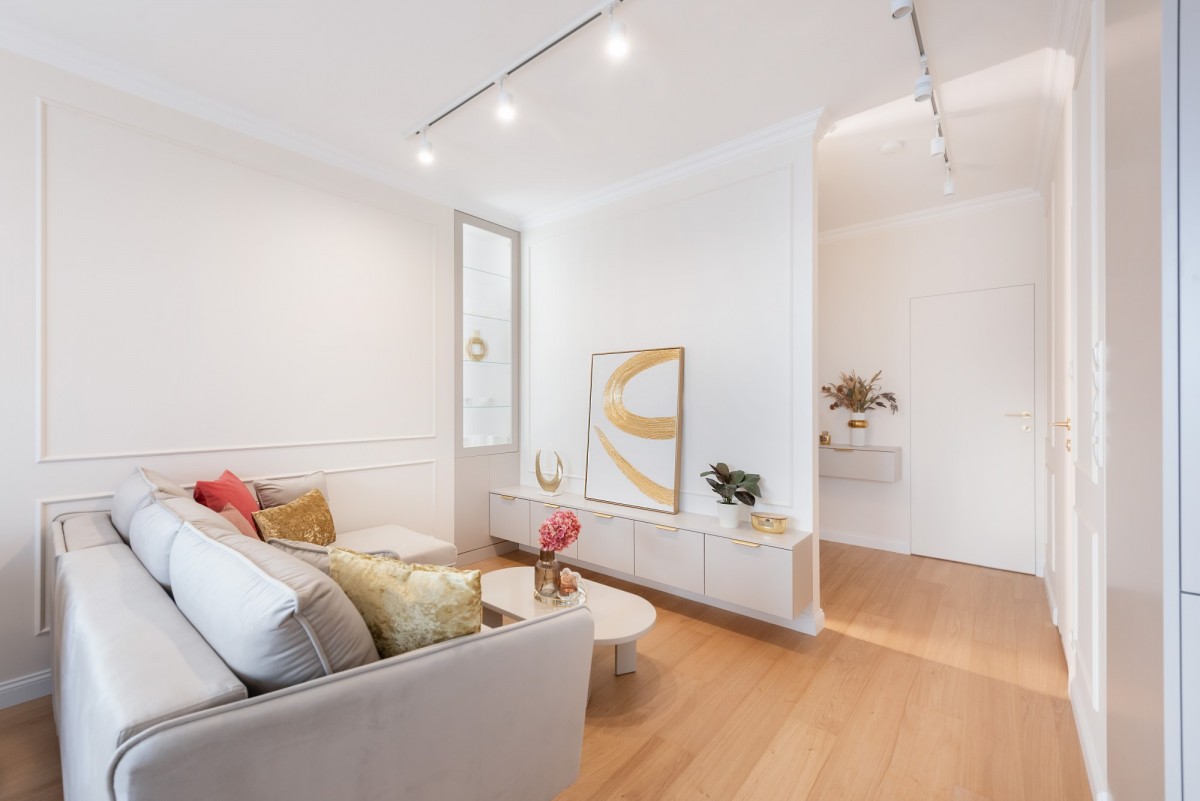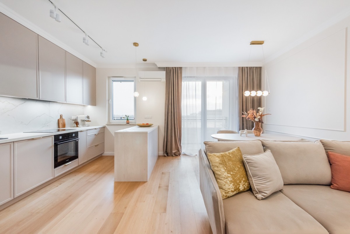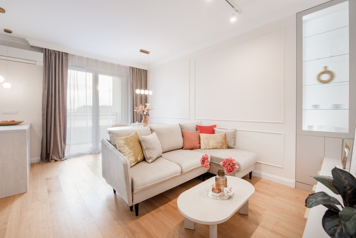 Mieszkanie zostało zaprojektowane tak, aby wykorzystać każdy centymetr powierzchni. Wykończone w wysokim standardzie, z dbałością o detale.